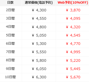 - レンタル開始日は「到着日が1日目」